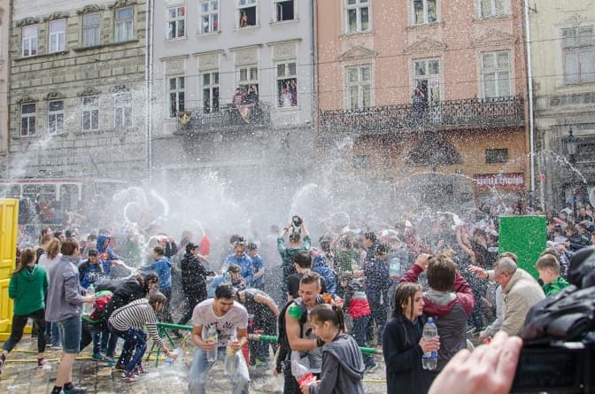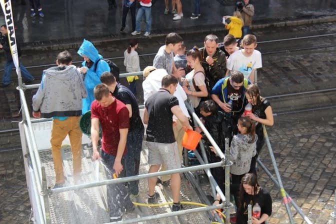 Всіх тих, хто буде обливатися в інших частинах центральної частини міста, волонтери, громадські активісти та працівники правоохоронних органів будуть скеровувати на площу Ринок.