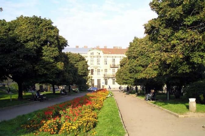 - близько до обласної філармонії; інколи буває, що музиканти приходять до площі-скверу грати;