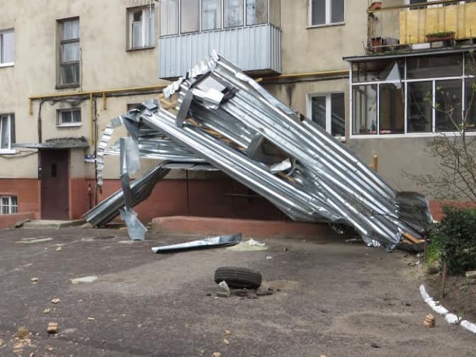 Від сильного вітру частково зірвало металеві листи з даху на будівлі Спорткомплексу «Галичина», що на вулиці Керченській, 8. Листи були відкинуті на будівлю № 19. Окрім того, унаслідок цього розбилося скло на балконі першого поверху та пошкоджено легковий автомобіль. На щастя, мешканці не постраждали.