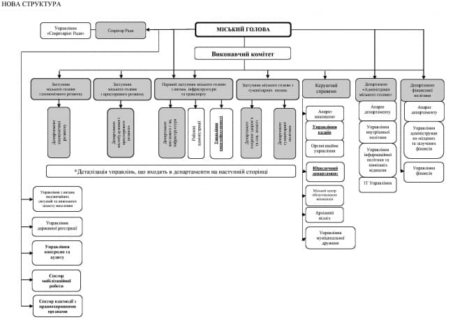Відповідно до запропонованої нової структури, передбачається зменшення кількості працівників на понад 100 осіб та створення нових структурних одиниць – управління ОСББ, ІТ, енергоефективності, Інспекції архбудконтролю. Як зазначає керівник юридичного управління Гелена Пайонкевич, у новій структурі максимально враховано вимоги реальності, аби якнайширше забезпечити потреби мешканців міста.