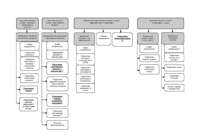 3. Перший заступник міського голови буде заступником з питань інфраструктури та транспорту. Він керуватиме відповідним департаментом, у нього у підпорядкуванні будуть районні адміністрації.