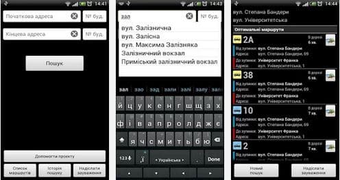 Щоб отримати список маршрутів, достатньо ввести адресу відправлення та адресу призначення. Програма самостійно підбере доступні маршрути (прямі чи з пересадками) та відсортує список в порядку їх оптимальності.