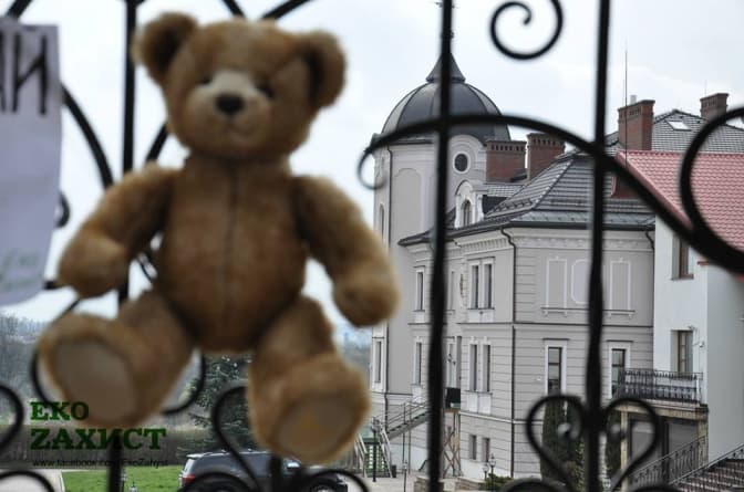 Протестувальники прийшли до маєтку депутата з плакатами і з м’якими іграшками, які символізували тварин, яких вбили Дубневичі. Все це приклеїли на ворота. Зоозахисники сподівалися, що Богдан Дубневич вийде на розмову із учасниками протесту, однак, за словами охоронців, власника вдома не було.