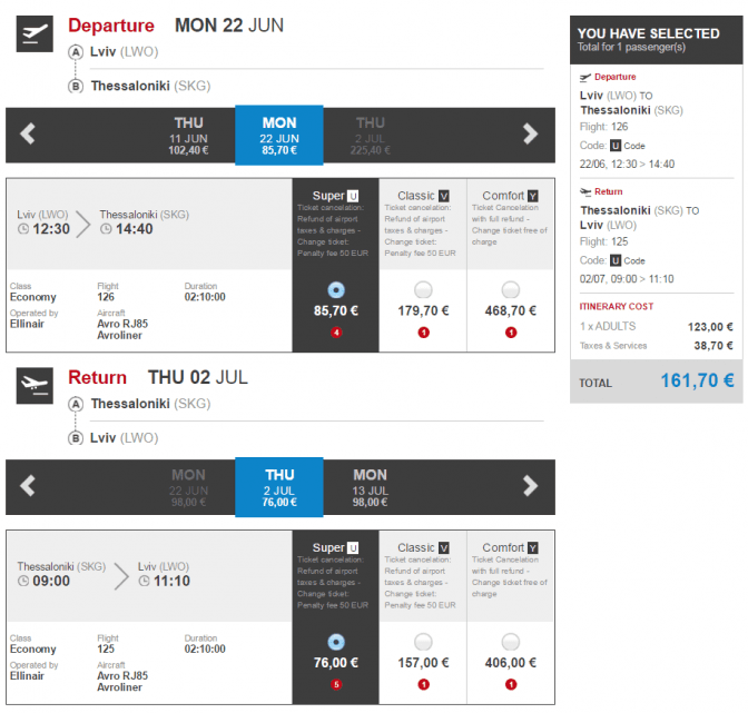 Квитки вже можна придбати на сайті авіакомпанії ellinair.com. На рейс Львів – Салоніки найнижча ціна 161 євро за квиток у дві сторони.