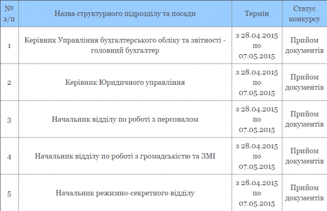 Повний перелік вакансій із зазначеними термінами подачі документів оприлюднений на офіційному сайті нещодавно створеного відомства.
