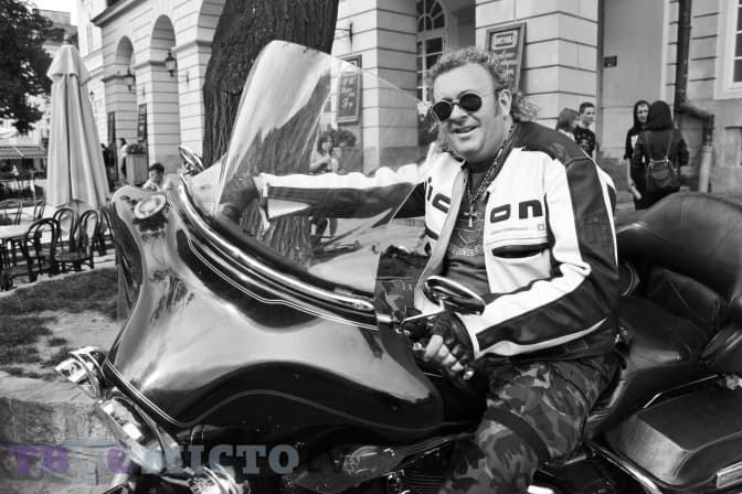 Ґєник Білінський, 44 роки, львів’янин. На своєму байку марки Harley-Davidson їздить кожного дня. Це його основний засіб пересування по місту. Каже, що «милозвучне гарчання двигуна» свого залізного друга може відрізнити серед тисячі мотоциклів.