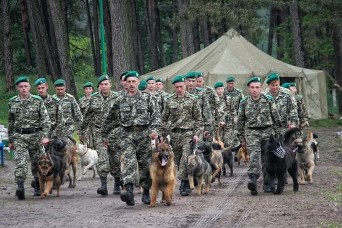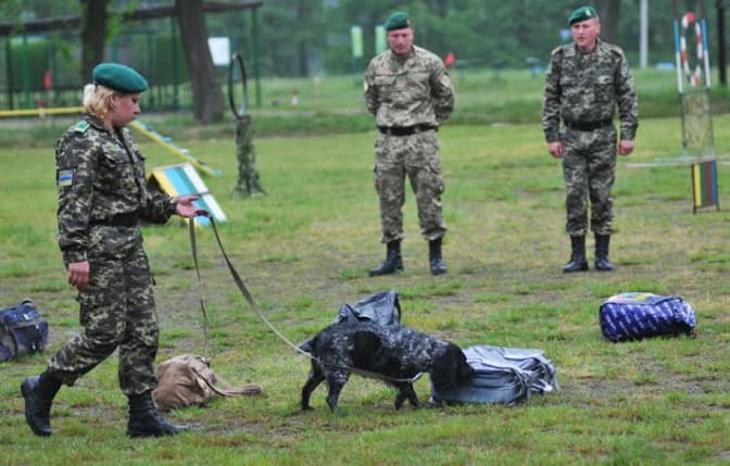 5. Нині разом з бійцями охороняти східні кордони держави вирушають і собаки, підготовленні на базі Кінологічного навчального центру. В Донецькій та Луганській областях вони разом з інспекторами прикордонної служби проводять перевірки транспортних засобів на присутність контрабанди товарів, незаконної зброї, вибухівки та наркотичних речовин. Також в центрі відновлено підготовку службових собак для пошуку мін, фугасів та інших підривних засобів. На сьогодні вже підготовлено 4 таких групи чисельністю 82 чоловіка.