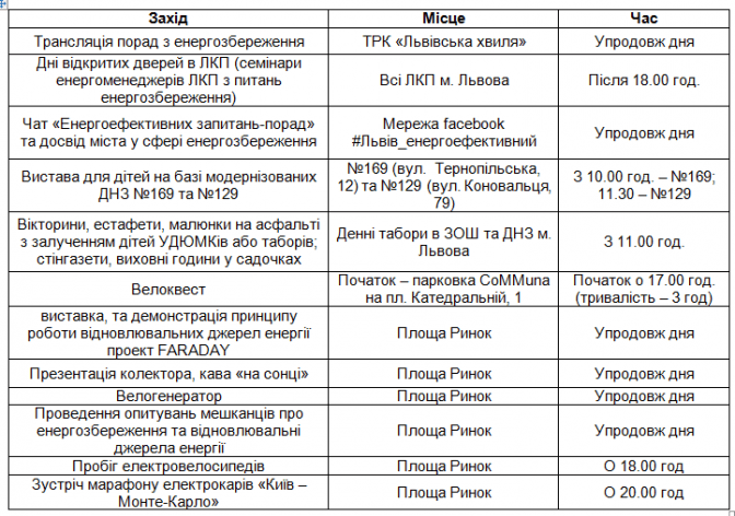 Долучитися до проведення Дня енергії у Львові запрошують усіх охочих. Детальніша інформація – відділ енергоменеджменту Львівської міської ради (тел. 297-58-57).