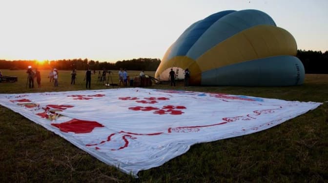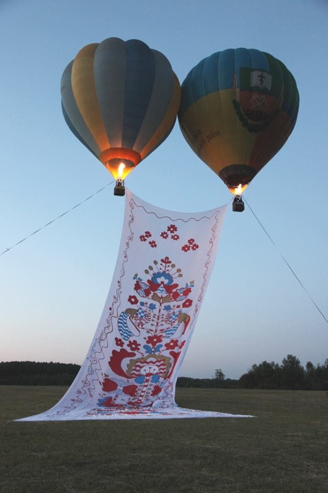 В Україні зареєстрували ще один рекорд – найбільший літаючий рушник, який підняли в небо за допомогою двох повітряних куль. Як зазначають ініціатори цього дійства, розміри полотна 49 метрів 10 сантиметрів на 14 метрів 60 сантиметрів, а вага сягає близько 300 кілограм.