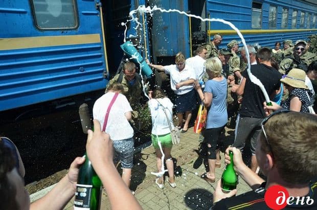 Учора, 12 червня, додому із зони АТО приїхали 136 бійців 80-ої аеромобільної бригади. Бійці прибули потягом «Харків–Львів» на головний залізничний вокзал, де на них із нетерпінням чекали рідні та близькі. На пероні – обійми, квіти, національні прапори і відкорковане шампанське: за щасливе повернення.