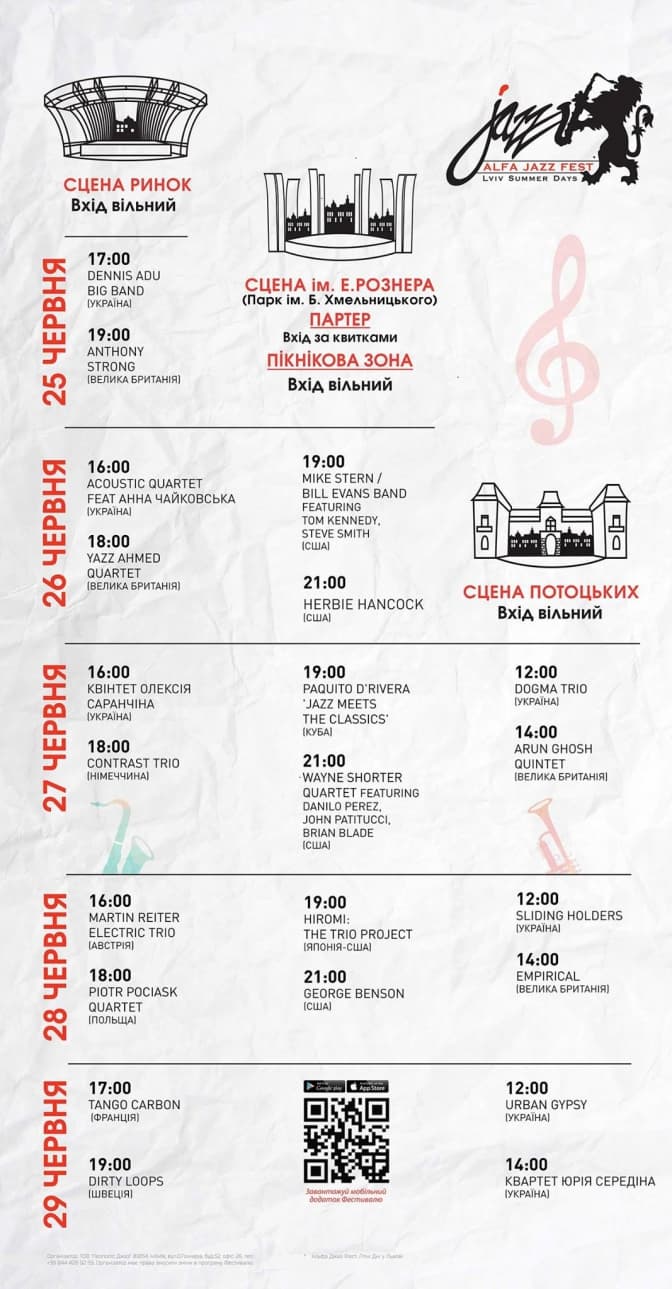 Нагадаємо, організатори зазначають, що цього року Alfa Jazz Fest збере найсильніший склад музикантів. До Льовова приїдуть такі виконавці світового рівня, як композитор Гербі Генкок, легендарний гурт Mike Stern/Bill Evans Ban та піаністка з Японії Хіромі. А також Вейн Шотер (Wayne Shorter) – легендарний музикант, який цього року отримав премію Греммі за особливий внесок у розвиток музики протягом життя (Grammy Lifetime Achievement Award).