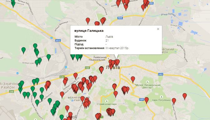 Львівська міськрада пропонує львів’янам знайти свій будинок на інтерактивній карті встановлення теплових лічильників.