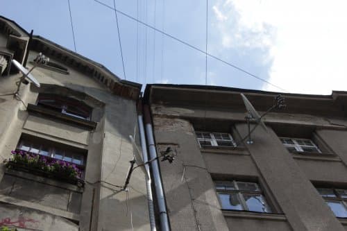 Сьогодні, 19 червня, на вулиці О. Нижанківського у Львові обвалилась частина будинку, пошкодивши припарковане на вулиці авто.