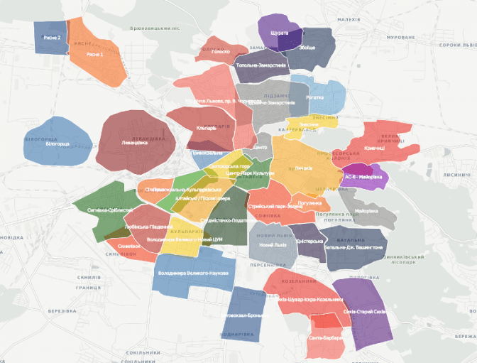 Найменше розбіжностей щодо кордонів виявилось вздовж суцільної залізничної колії. Найбільше — в парках. Цікаво, що мешканці історичних кварталів асоціювали зі своїм районом і ділянки нової забудови, а жителі останньої проводили межу району по території новобудов. У результаті сформувалось 39 мікрорайонів Львова.