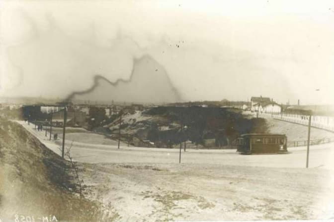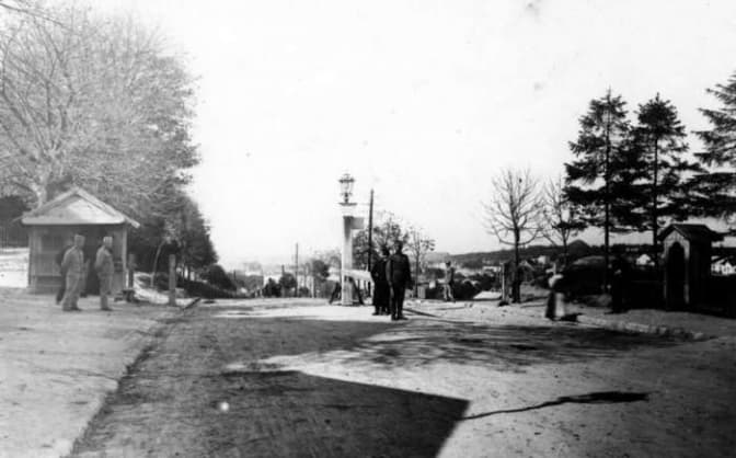 Рогатка на верхньому Личакові із трамвайним роз'їздом біля станції. Фото поч. XX сторіччя