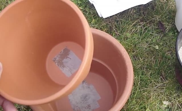 1. Спершу необхідно приклеїти горщик меншого розміру всередину великого.