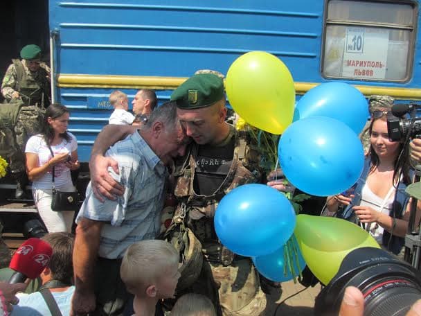 На Головному залізничному вокзалі прикордонників зустрічали родичі, друзі і просто небайдужі львів’яни. Із поверненням до Львова героїв вітали букетами квітів і синьо-жовтими кульками. А заступник начальника Західного регіонального управління Держприкордонслужби Костянтин Безпалько подякував військовослужбовцям за виконання усіх поставлених перед ними завдань, інформує Західне регіональне управління Державної прикордонної служби України.