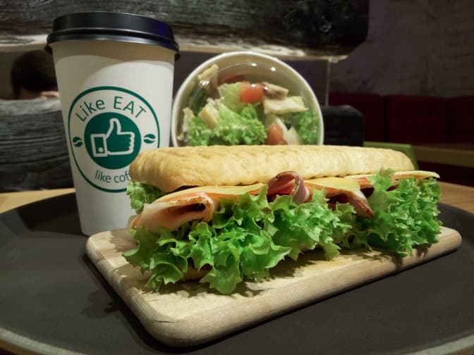 Для своїх панініпрацівники «Like eat» використовують тільки авторські соуси, зелень, свіжі продукти і тільки свіжий хліб.