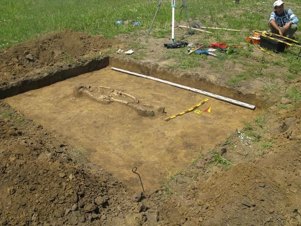 «Наразі ми дослідили лише чотири поховання, які були згори. Це скелети чоловіка, жінки і двох дітей, ймовірно, дівчинки 10 років і дитини орієнтовно 5 років. На скелеті жінки виявили мідне кільце, а поруч з дівчинкою – мідну кільцеподібну скроневу підвіску. Припускаємо, що ці поховання лише невелика частина могильника», - розповів керівник археологічної експедиції Олександр Сілаєв.