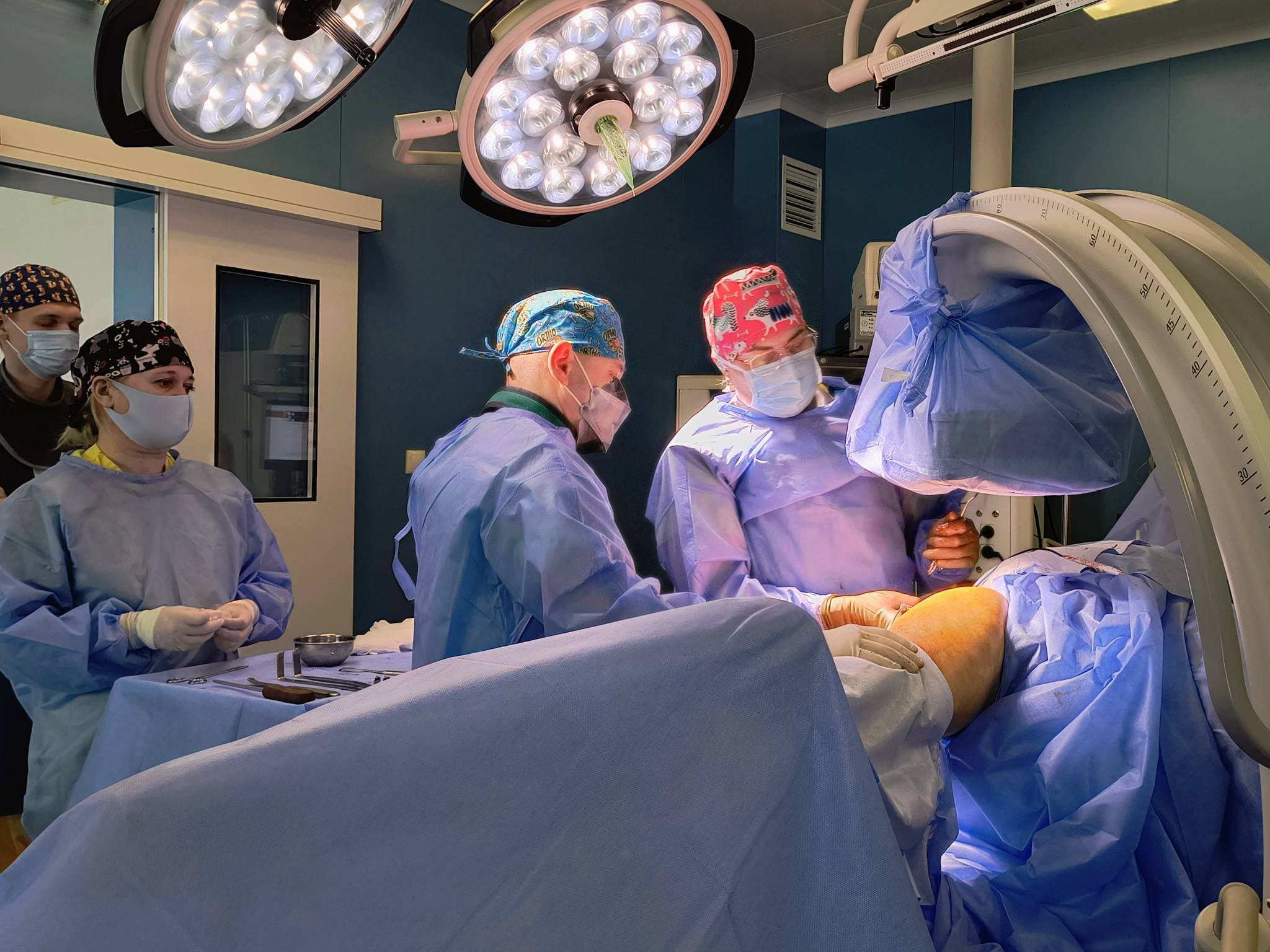 Під час операції лікарі спершу видалили шурупи, що блокували суглоб, далі виконали складну репозицію уламків та зафіксували кістку спеціальною пластиною. Після цього прямо в лінію перелому ввели стовбурові клітини, отримані з жирової тканини самого пацієнта.