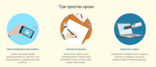 Для цього на сайті badparking.in.ua потрібно заповнити три спеціальні форми. Перш за все, необхідно вказати контактні дані (ім'я, телефон, email), далі описати правопорушення й зазначити, коли і в якому місті воно відбулося, а тоді додати до скарги фото- або відеопідтвердження самого порушення.