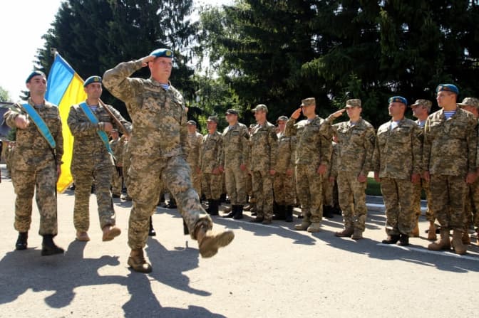 Після хвилини мовчання до присутніх звернувся командир частини Володимир Шворак: «Почуття обов'язку, відвага, професіоналізм, стійкість – усі ці якості українські десантники показали у війні на Донбасі. Вони завжди були на передових позиціях, виконували завдання на найбільш загрозливих напрямках. Вони стали символом мужності і відваги. На жаль, жодна війна не обходиться без жертв, тому нинішнє свято має для нас гіркий присмак. 90 воїнів нашої бригади поклали життя за збереження цілісності і суверенітету нашої держави».