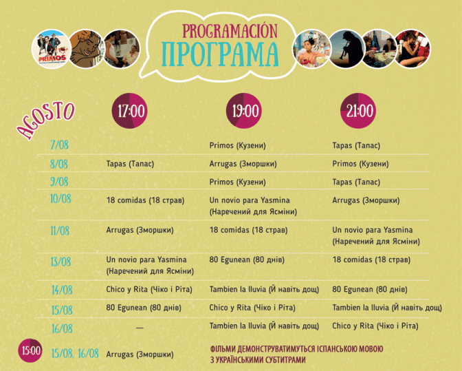 Arrugas (Зморшки): 08 серпня (19:00); 10 серпня (21:00); 11 серпня (17:00)