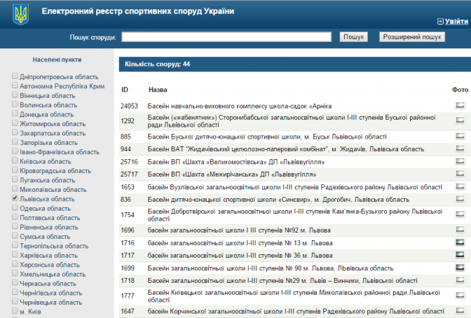 За словами Юрія Майбороди, найбільше спортивних споруд функціонує у Львові – 1 170 та у Жидачівському і Сокальському районах, де зафіксовано 349 та 328 спортивних об’єктів відповідно. «На відміну від Львова, де паспортизовано лише 19 відсотків спортивних споруд, у цих районах усі об’єкти уже подано до реєстру», - підсумував Юрій Майборода.