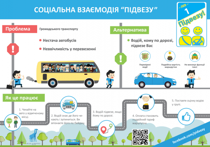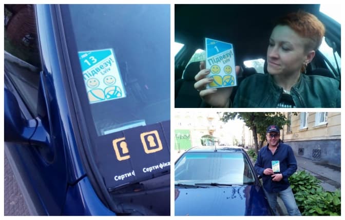 5. Віднедавна у різних точках міста на зупинках є наліпки й інформаційні плакати. Наліпки помітні здалеку для водіїв, а для пасажирів є сигналом, що тут може зупинитися авто із пропозицією підвезти. Зараз львівська команда «Підвезу!» разом із волонтерами поширюють інформаційні матеріали та наповнюють мапу з позначками, яка вже і так є чималою. Якщо поблизу вас чи у вашому районі цей рух не поширений, активісти закликають зголоситися, стати волонтером та допомогти в поширенні матеріалів самостійно.