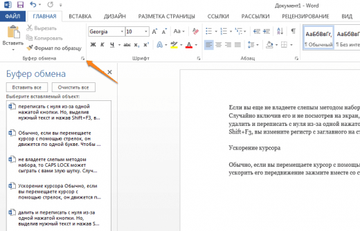 Якщо ви користуєтеся копіюванням і вставкою (а ви напевно ними користуєтеся), то, швидше за все, знаєте про розширений буфер обміну в Word. Якщо ні, то він викликається натисканням на однойменну кнопку і показує все, що ви копіювали в буфер за час роботи.