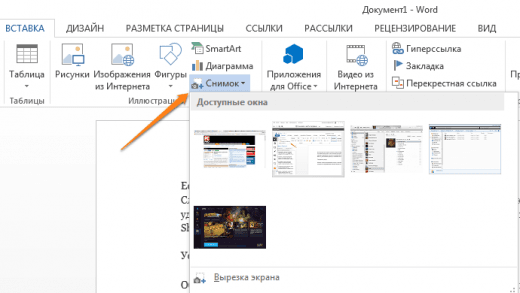 Якщо ви робите мануал, огляд сервісу або вам просто потрібно вставити скріншот в Word, зробити це можна дуже просто за допомогою відповідного інструменту. Натисніть на кнопку «Знімок», і Word покаже всі активні вікна. Клікнувши на будь-яке з них, ви отримаєте скріншот цього вікна.