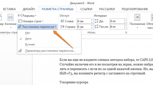 Включення переносів може поліпшити читабельність тексту, а також позбавить вас від довгих порожніх інтервалів між словами. Ви можете розставити їх самі або довірити це комп’ютеру. Кнопка знаходиться в меню «Розмітка сторінки» – «Розстановка переносів».