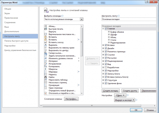 Верхню стрічку з кнопками можна дуже гнучко налаштувати. Для цього перейдіть в меню «Файл» – «Параметри» – «Налаштувати стрічку». Тут можна додати функції, яких раніше не було, і видалити ті, які не потрібні. Більше того, ви можете видаляти або створювати свої вкладки з функціями.