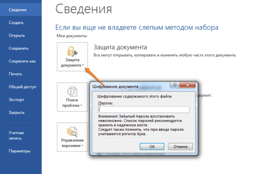 Щоб захистити документ паролем, перейдіть у вкладку «Файл» і виберіть опцію «Захист документа». Тепер сміливо створюйте пароль, однак пам’ятайте, що якщо ви його забудете, відновити його не вийде.