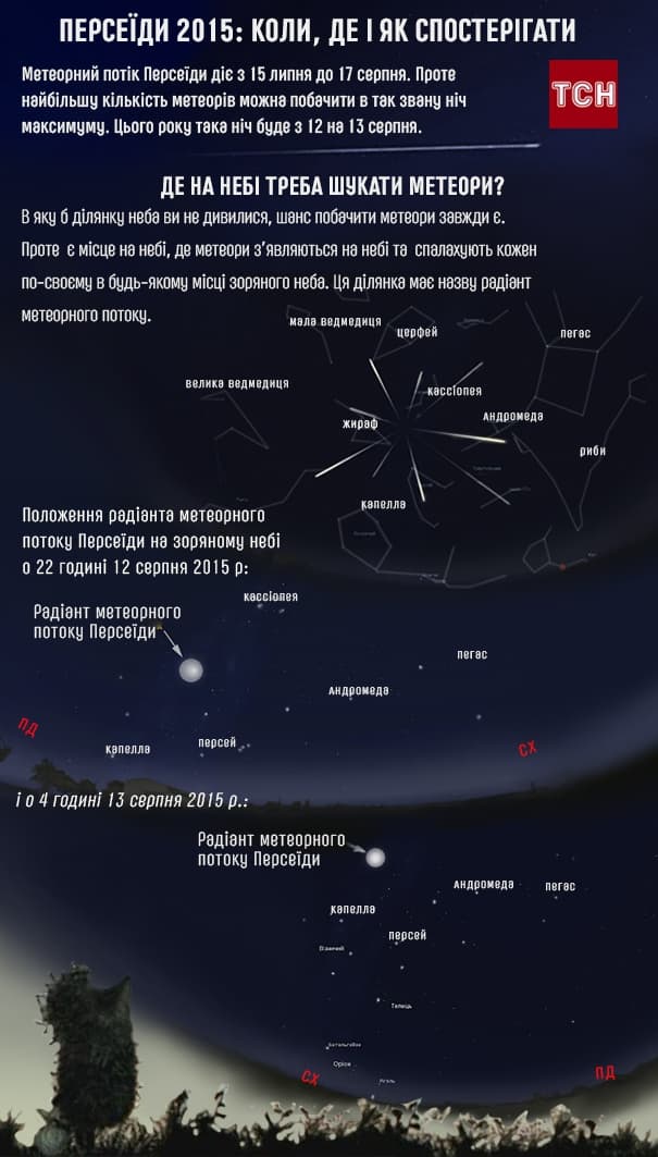 За словами науковця, найкраще спостерігати за метеорним потоком від півночі 12 серпня до світанку 13 серпня. Наступного дня потік ще можна буде помітити на небі, але його інтенсивність зменшиться приблизно вдвічі. «Варто дивитися опівночі у східну частину небосхилу. Однак, не розглядайте персеїди через бінокль, адже цей прилад має невелике поле зору. Найліпше дивитися неозброєним оком. В ідеалі - лежачи», – радить Мирослав Стоділка.