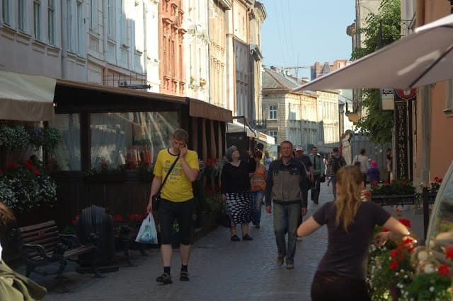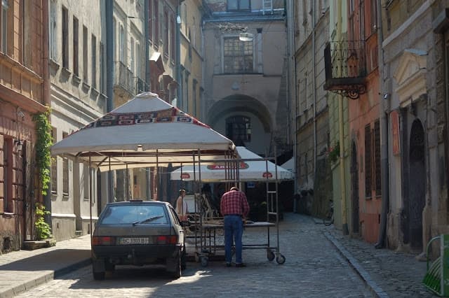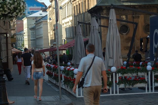 Громадський активіст та представник Львівської асоціації велосипедистів Орест Олеськів у своєму блозі пропонує порівняти світлини львівських вулиць sз літніми майданчиками і без них.