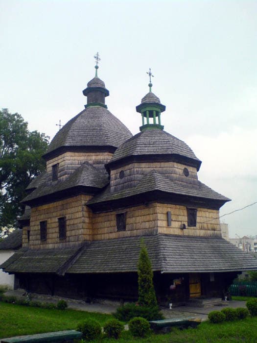Збудована на колишньому Львівському передмісті у 1720 р. коштом парафіян та королевича Костянтина на місці згорілої у 1717 році. Церква становить собою дерев'яну, тризрубну будівлю із цегляною добудовою – ризницею. Білокам'яне обрамлення вікон та портал перенесені сюди із розібраної замкової вежі.