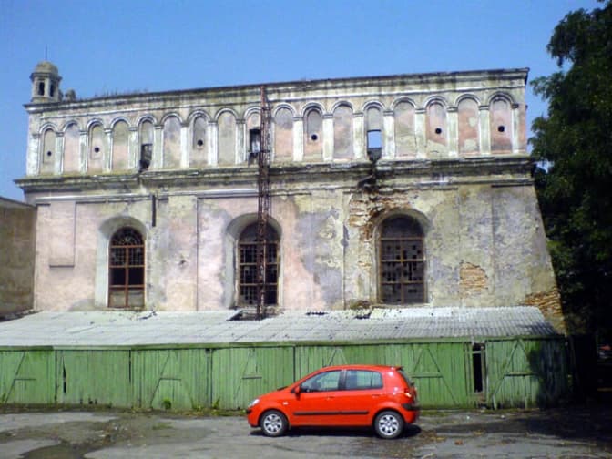 Спочатку, в 1625 р, синагога була зведена дерев'яною, бо побудова була дешевшою і не потребувала дозволу на спорудження, на відміну від кам'яної. Проте відносно скоро вона згорає. Нову синагогу починають будувати щойно лиш у 1692 р. за сприяння короля Яна ІІІ Собєського та під керівництвом королівського архітектора Петра Бебера. Збудували нову святиню у 1698 р. у стилі ренесансу. Вона є однією з найбільших у Європі оборонних споруд у цьому стилі. Стіни синагоги оборонного типу, бо вона була, як підтвердили археологічні розкопки, розташована коло міського муру.