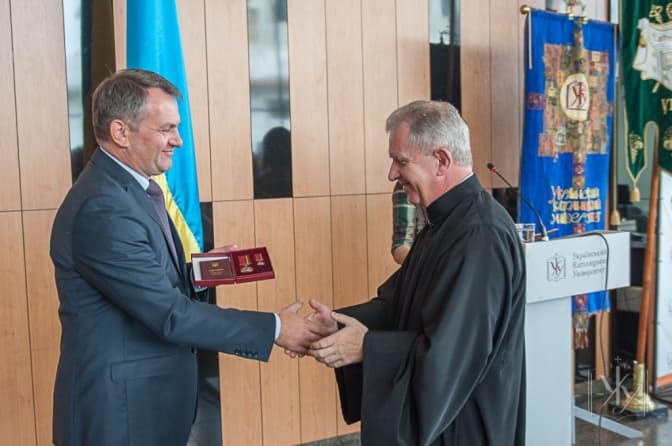 Нагороду ректору УКУ від імені Президента України Петра Порошенка під час урочистих святкувань з нагоди початку нового Літургійного та навчального 2015-16 р. в університеті вручив очільник Львівської області Олег Синютка, інформує УКУ.