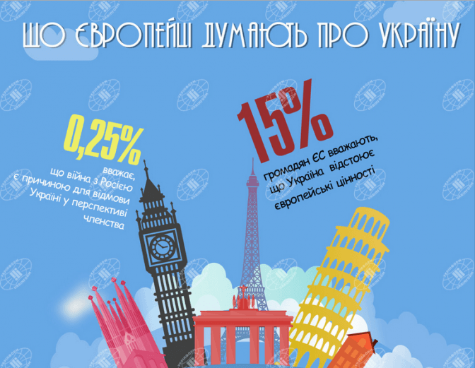 Укрінформ на основі соціологічних досліджень компанії TNS, підготував інфографіку, аби зрозуміти, якими є основні уявлення європейців про Україну.