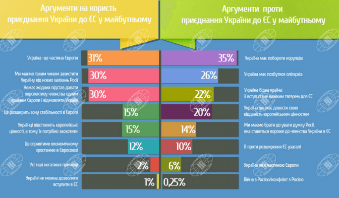 Інститутом світової політики було проведено соціологічне дослідження в найбільших країнах Євросоюзу Великобританії, Іспанії, Італії, Німеччини, Польщі та Франції (це більше половини мешканців ЄС — майже 360 млн. осіб із загальної кількості в понад 500 млн.). Його мета полягала не лише в тому, аби зрозуміти аргументи і контраргументи європейців із приводу європейської інтеграції країни, але й які існують асоціації, пов’язані з Україною.