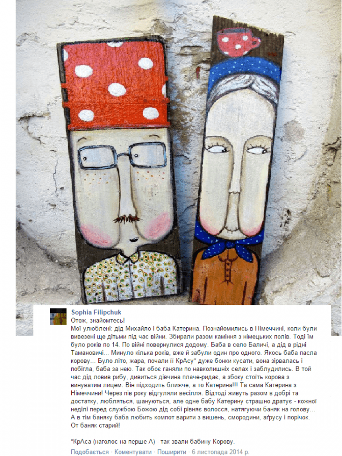 За кілька тижнів мисткиню з «Бабою-жабою» запрошують у Краматорськ. Єдина проблема, яка не дає їй спокій, – страх, що люди там не зрозуміють галицьких слів у підписах. Але Софія над цим працює – додає примітки і пояснення. Заразом і лінгвістична практика виходить.