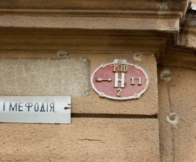 Таблички з літерами «H» та «Z» на стінах будинків у Львові