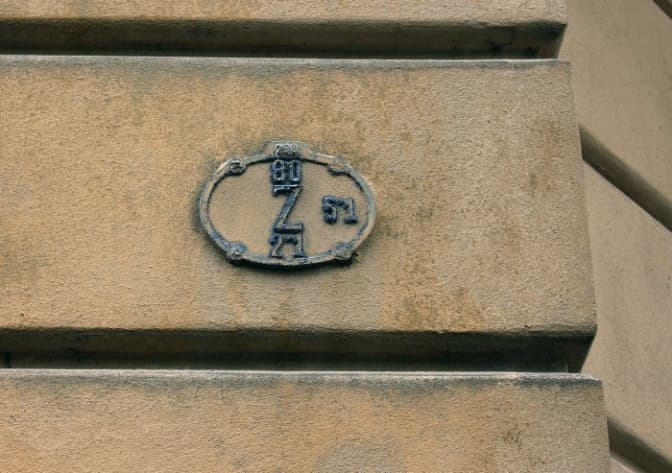 Табличка з літерою «Z», що вказує на гідрант (Z) на будинку у Львові