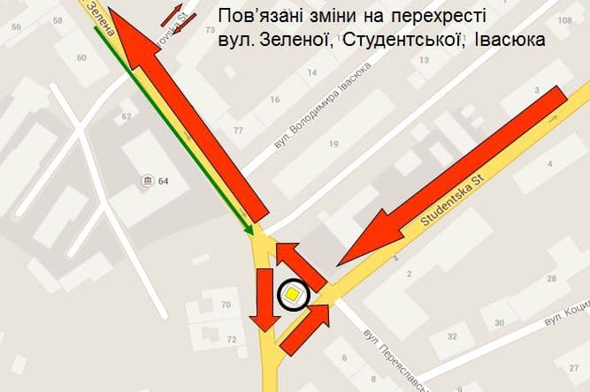 Через зміни руху на вул. Левицького і Зеленій, вул. Студентська теж змінить напрямок руху (в сторону вул. Зеленої). Щоб убезпечити учасників руху, на перехресті з вул. Зеленою планують організувати «кругове перехрестя».