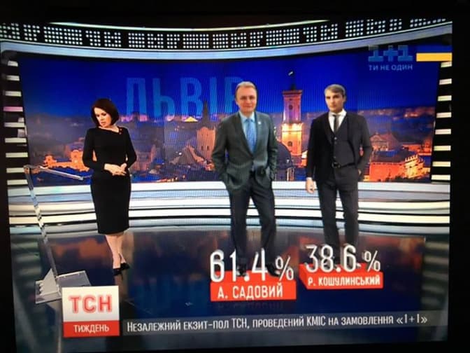 За даними «Фама», Андрій Садовий отримав 61,8% голосів, Руслан Кошулинський – 36,8%.