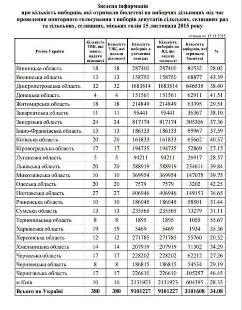 Учора, 15 листопада, на дільниці Львівщини прийшли 39,84% виборців. Згідно з інформацією ЦВК, бюлетені отримали 234 611 громадян. Загальна явка виборців по Україні становить 34,08%.