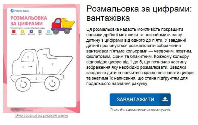 «Виконання завдань також сприятиме розвитку кольорового та просторового сприйняття дитини, прищеплюватиме художній смак та пробуджуватиме її мистецькі здібності. Працюючи над кожним завданням розмальовки дитина матиме змогу досягти вправності кистей рук, розвити дрібну моторику та зорово-рухову координацію, які забезпечують підґрунтя для подальшого розвитку письма та гарного почерку», – йдеться в описі до завдання.