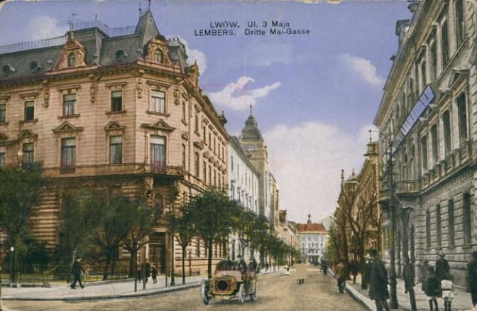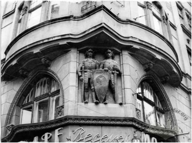 Будинок, що знаходиться на вул. Січових Стрільців під номером 12, був збудований у 1912-1913 рр. за проектом польського архітектора Романа Фелінського. Виконаний у стилі модерн з поєднанням ліпнини та різноманітних маскаронів (гіпсові зображення облич та масок) будинок ще більше вражав своєю красою. Від самого початку свого існування у лівому крилі (з боку вул. Костюшка) кам’яниці розміщувалися фешенебельні заклади, здебільшого ресторани, назви яких мінялися декілька раз. Перше відкриття ресторації з гучною назвою «Ренесанс» отримало успіх у населення, яке часто проводило вечір у стінах цього закладу. Але власники незабаром змінили назву на «Лувр», а потім на «Рітц», проте це ніяк не вплинуло на потік все нових і нових відвідувачів.