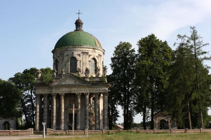 Віряни й досі приходять сюди на молитву, попри те, що храм руйнується. Велична споруда вражає своєю красою: 14 колон, 7 скульптур святих. На жаль, ще один монумент не зберігся. Він був зруйнований під час Другої світової війни. Сам костел Святого Йосипа зведений у 18 столітті у стилі бароко як родова усипальниця шляхецького роду Жевуських.
